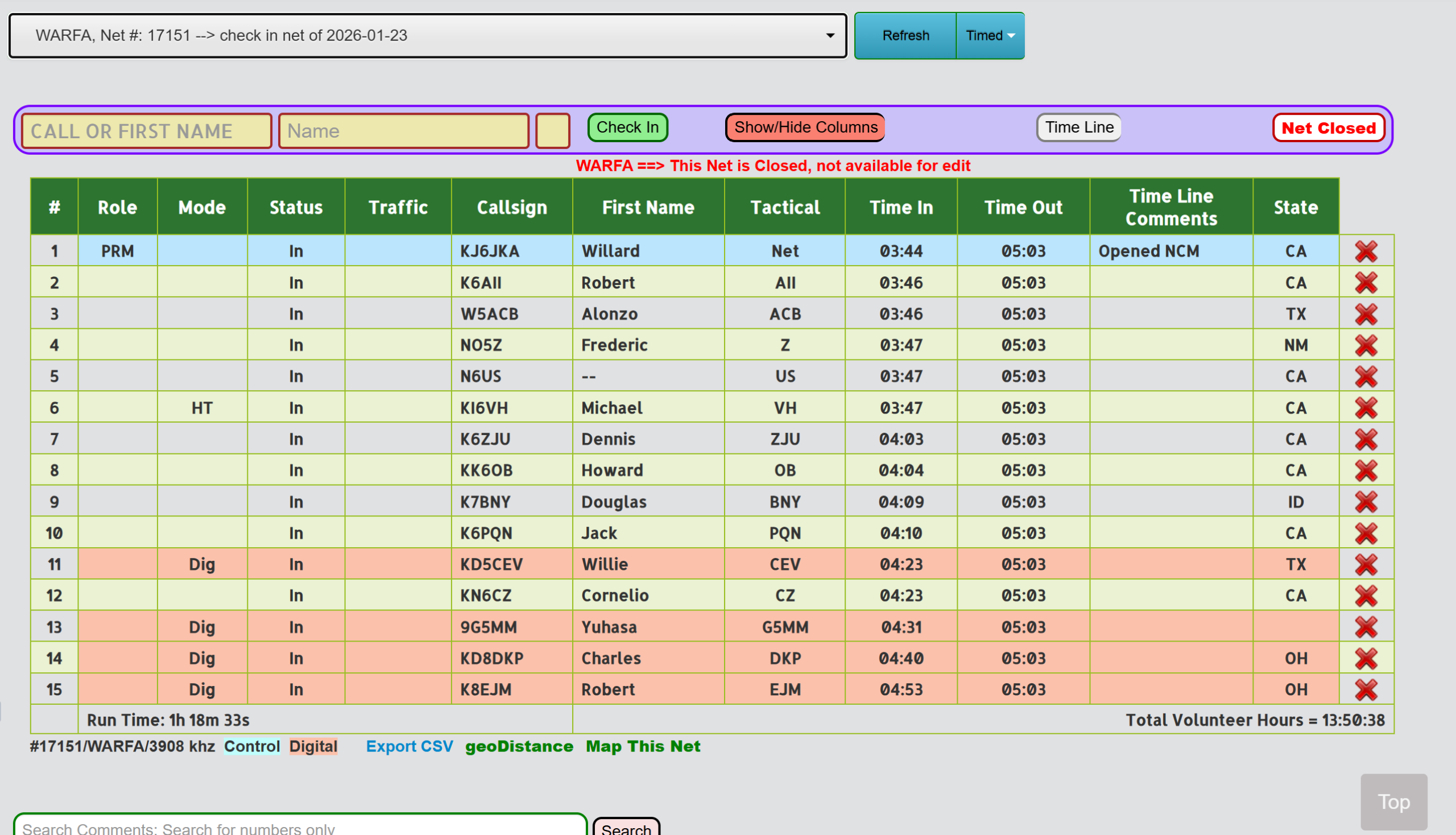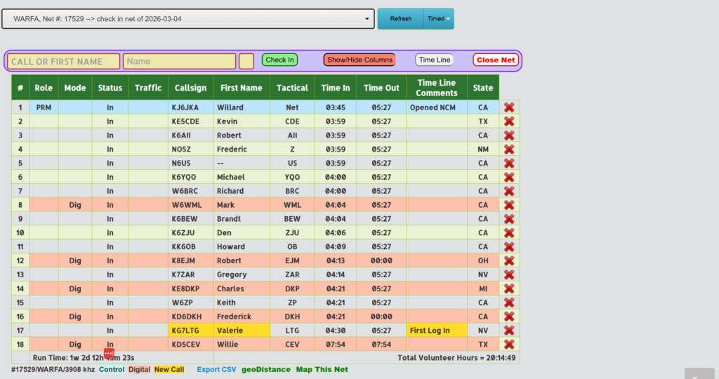 The net takes place on Sunday, Tuesday, and Thursday at 8pm 2000 hours Pacific Standard or Daylight savings time on 3908khz and as needed 3890khz..
