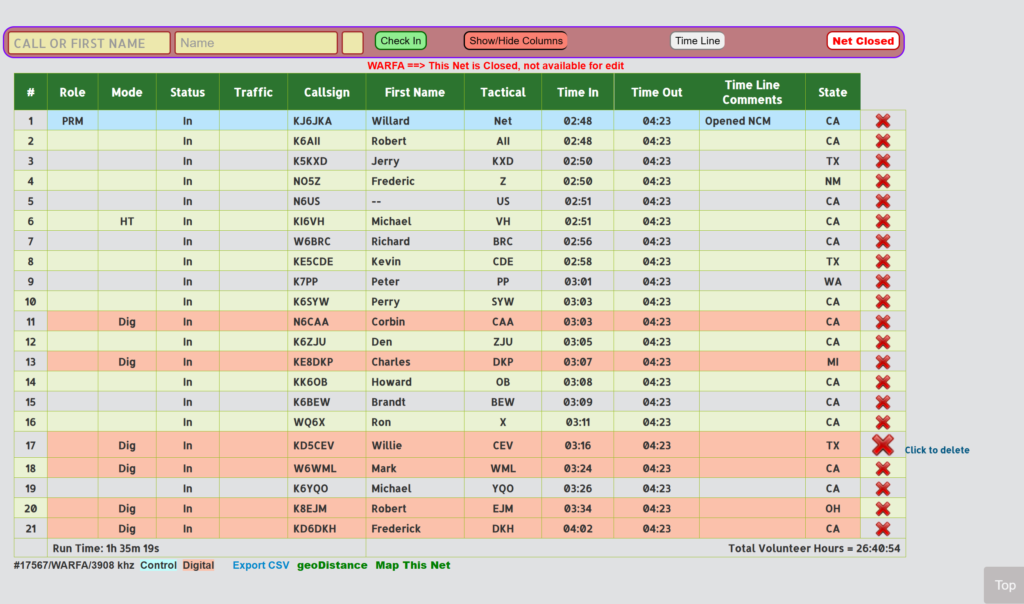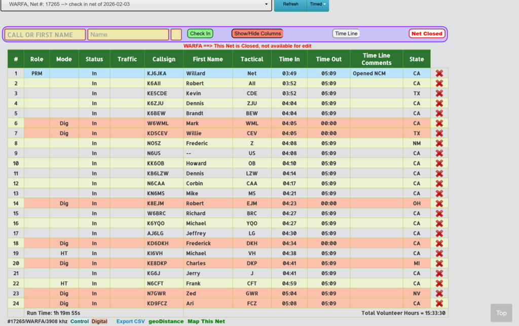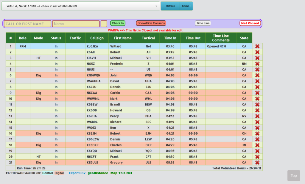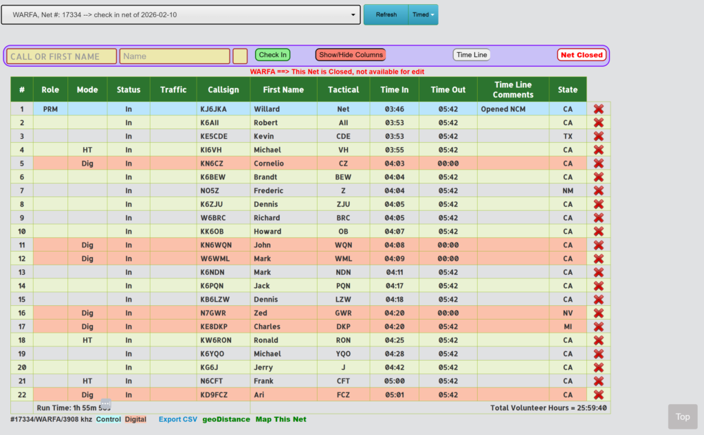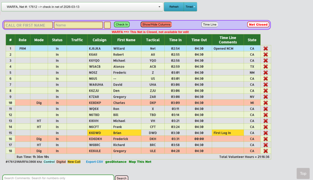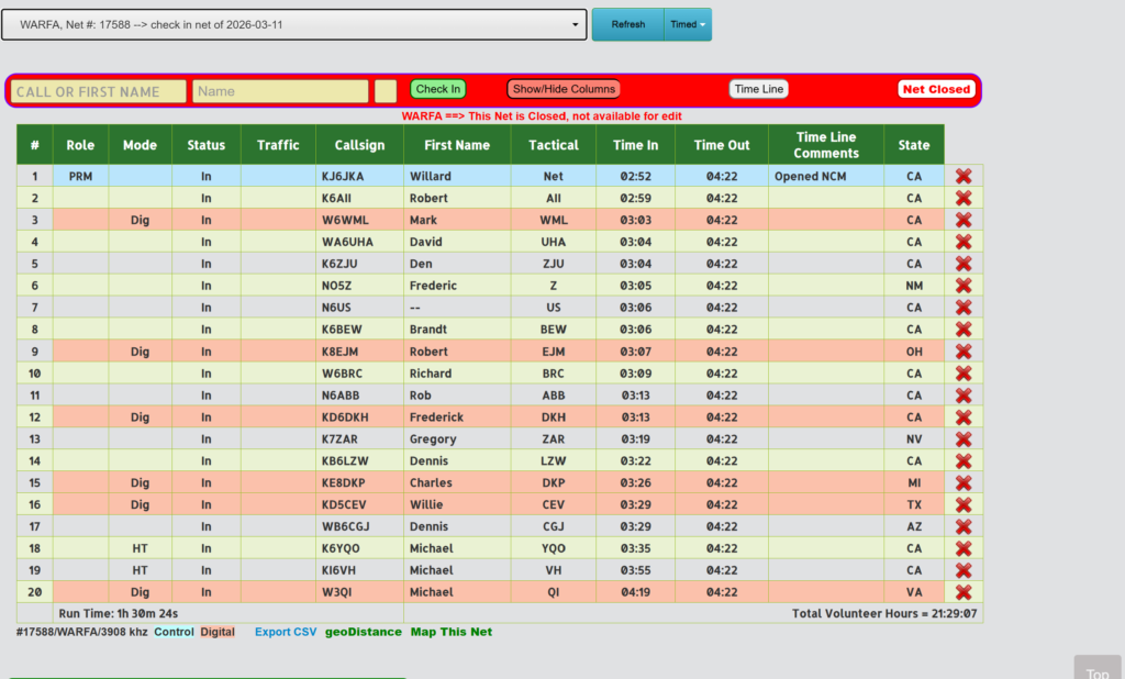 THE WARFA NET IS PART OF OUR STATEWIDE AND WESTERN REGION’S EMERGENCY SERVICES PRACTICE AND TRAINING EXERCISES AND ALL PROPERLY LICENSED HAMS ARE WELCOME TO JOIN US